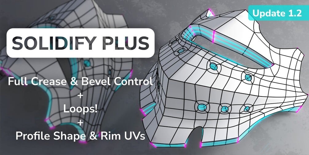 Solidify Plus is a modifier for Blender featuring loops, full crease & bevel weight controls, custom profile shape and more!